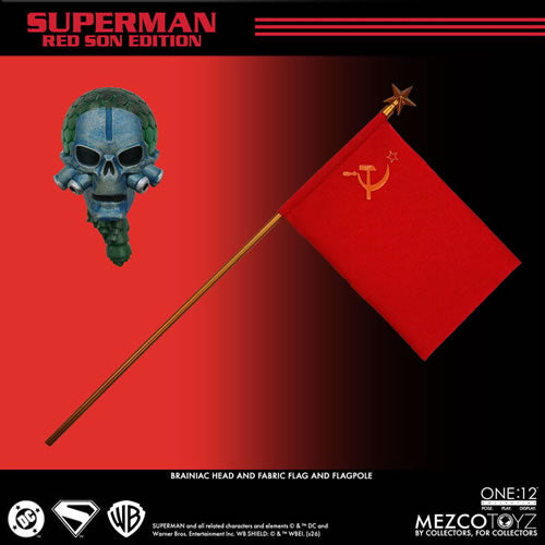 - The One:12 Collective Red Son Superman presents a striking reimagining of the Man of Steel, outfitted in a textured suit marked with the unmistakable hammer and sickle crest. His commanding presence is matched by a tailored fabric cape that features an integrated posing wire, allowing for dramatic, airborne displays worthy of a world under his watch.