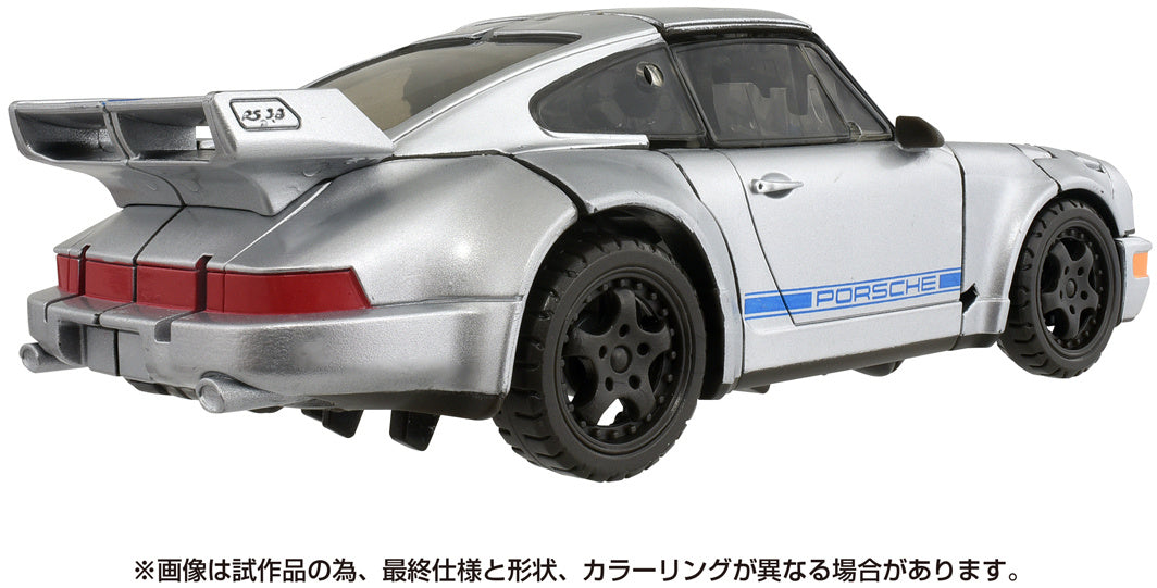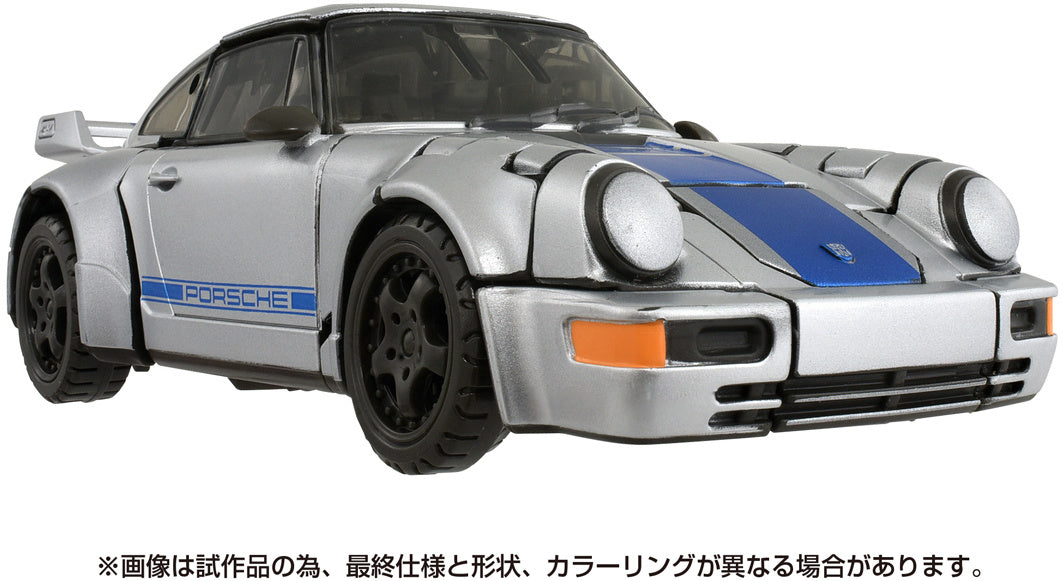This new "Studio Series" action figure from Takara Tomy reproduces Mirage from 2023's "Transformers: Rise of the Beasts"! He transforms from his robot mode to a silver 964 Porsche 911 with blue stripes; he was hiding in the underground parking garage of a luxury hotel, but when Noah stole him, he became friends with him. Although he has a tendency to be a joker, he has a strong sense of justice and will never allow his friends to be harmed. His fighting style uses holographic avatars to toy with his enemies! This fully posable figure comes with a blaster-type gun. Order him for your own collection today!