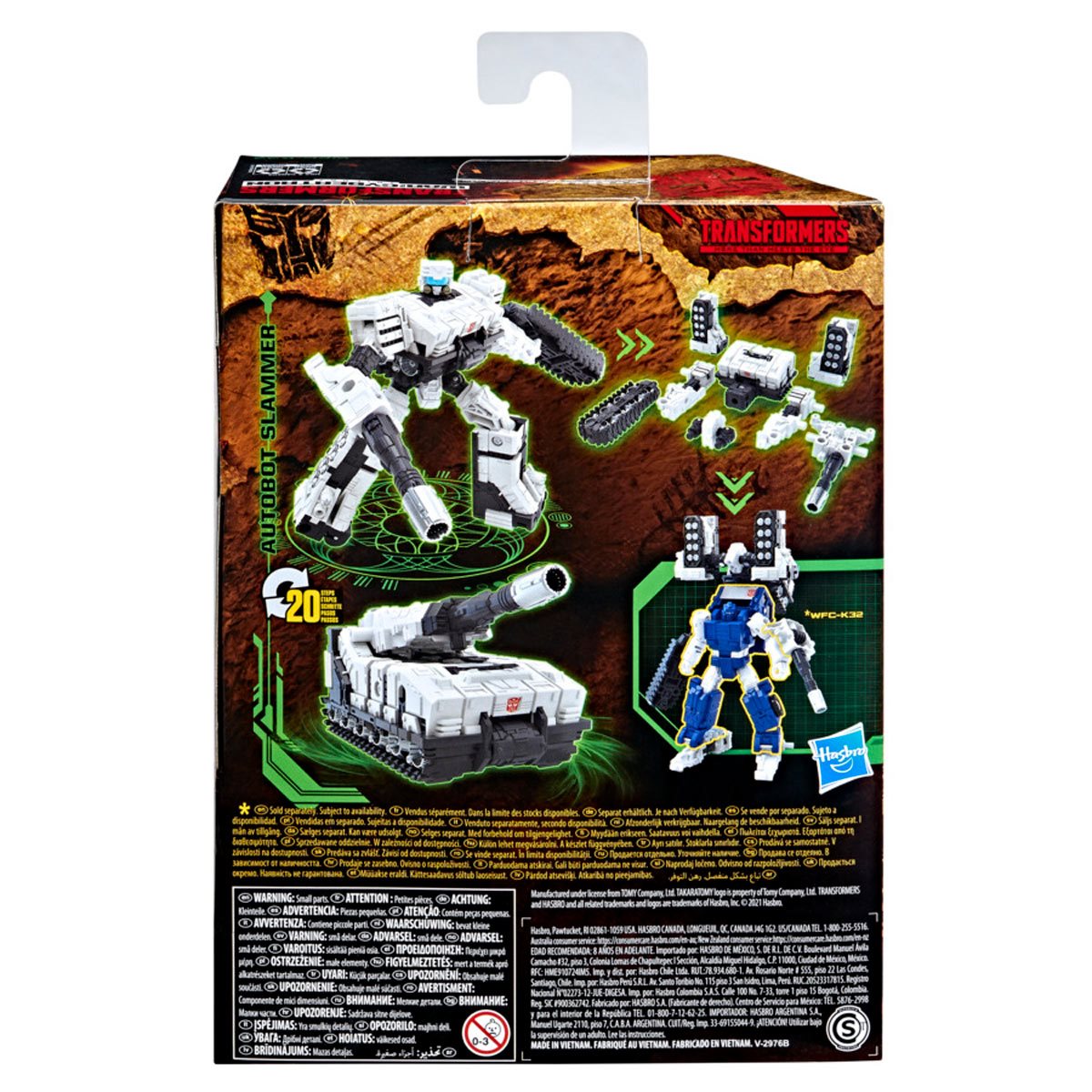 Bring home Metroplex' partner with the Transformers War for Cybertron Kingdom Deluxe Slammer! This bulky warrior is ready to team up with Cog and defend the Autobot stronghold in his robot mode or as an armored vehicle. He might even have a few more surprises up his sleeve - just point him at the Decepticons and watch the battle begin!