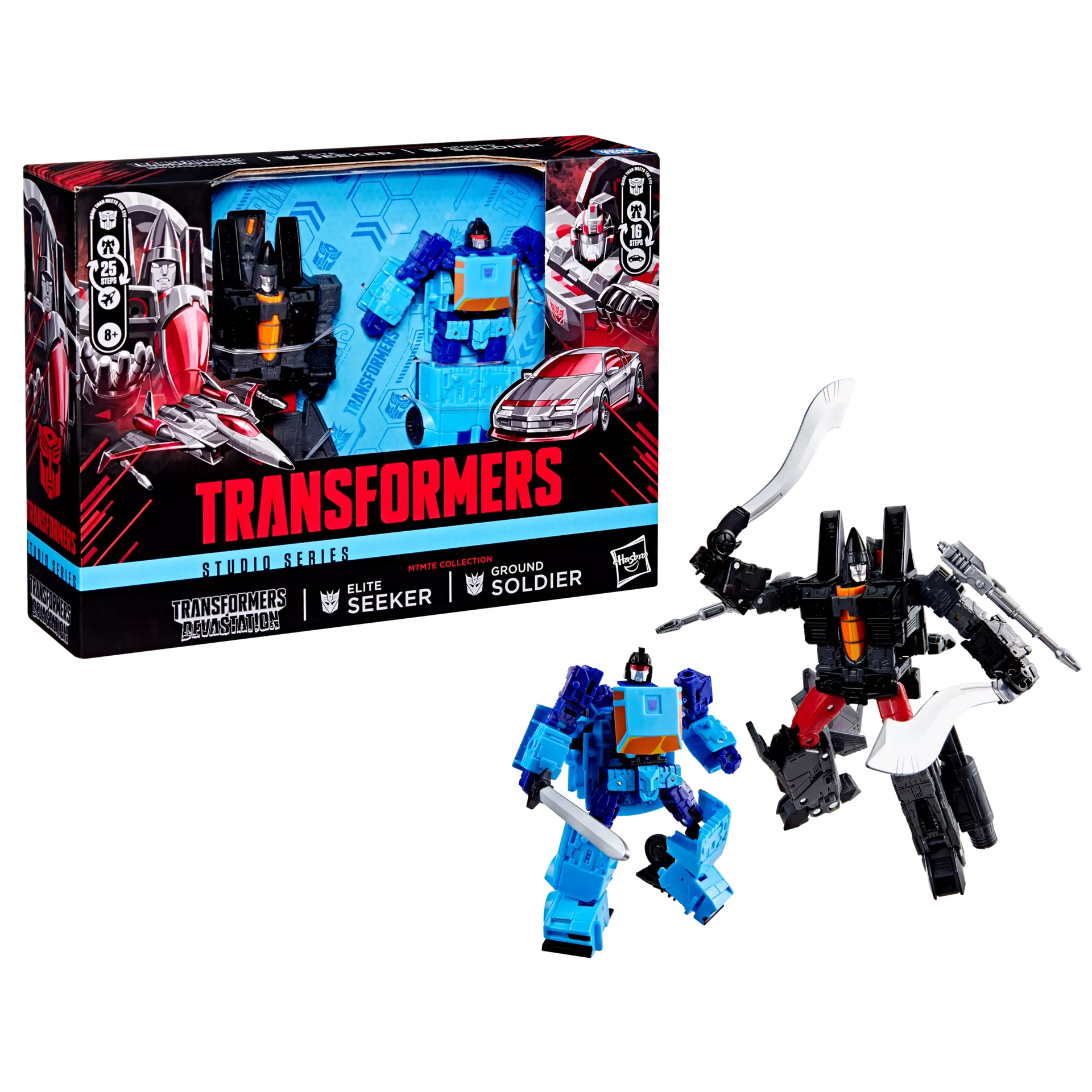 - TRANSFORMERS: DEVASTATION ACTION FIGURE 2-PACK: This Transformers Studio Series toy includes highly articulated Ground Soldier and Elite Seeker action figures with game-inspired deco and details