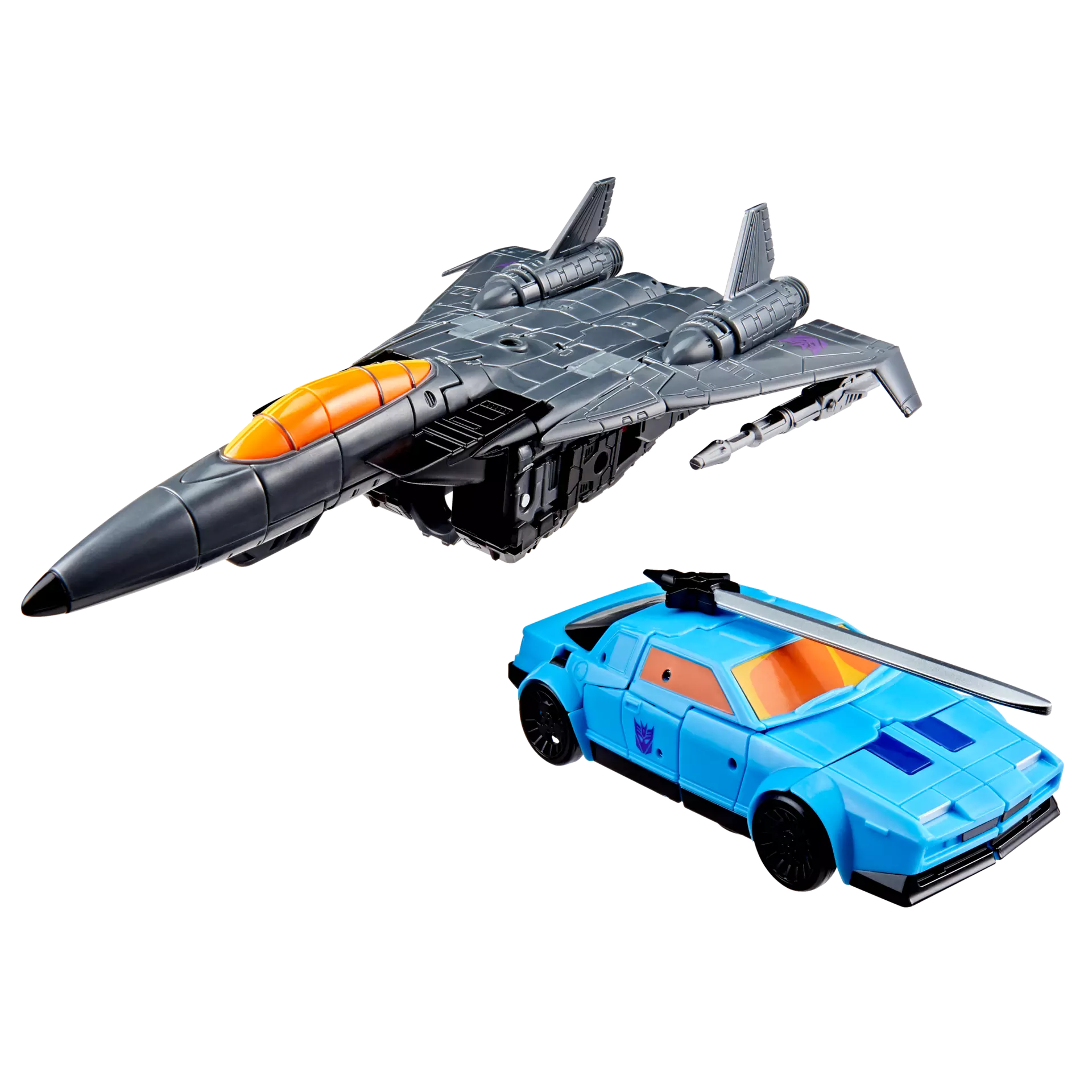 - AWESOME ACCESSORIES: This Transformers figure 2-pack comes with 3 swords, and 2 jet blasters that attach to the figures