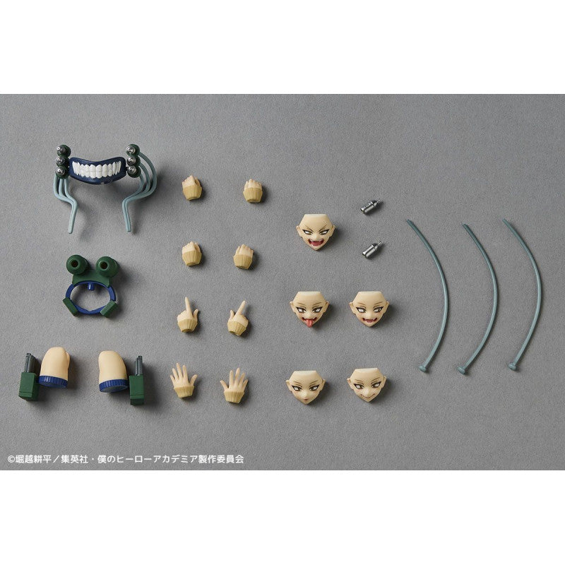 Mirko, the powerful martial-arts female hero from "My Hero Academia" with rabbit-based abilities, joins the "Revoltech" action-figure team from Kaiyodo! Her rabbit Quirk allows her to hear with her long ears and gives her superior leg strength and jumping ability. This new Revoltech figure is sculpted to reflect her well-trained body, especially the muscular lines of her strong, toned legs and shoulders. She's also painted to match her appearance in the anime, with her tan skin with white hair and red eyes. Her legs have a particularly wide range of motion -- even the toes of her feet can move, allowing her to recreate her spectacular kicks! Her hair is jointed, and a flowing version of her bangs is included for dynamic poses; she comes with a total of six interchangeable highly expressive faces, too. Order her for your own hall of heroes today!